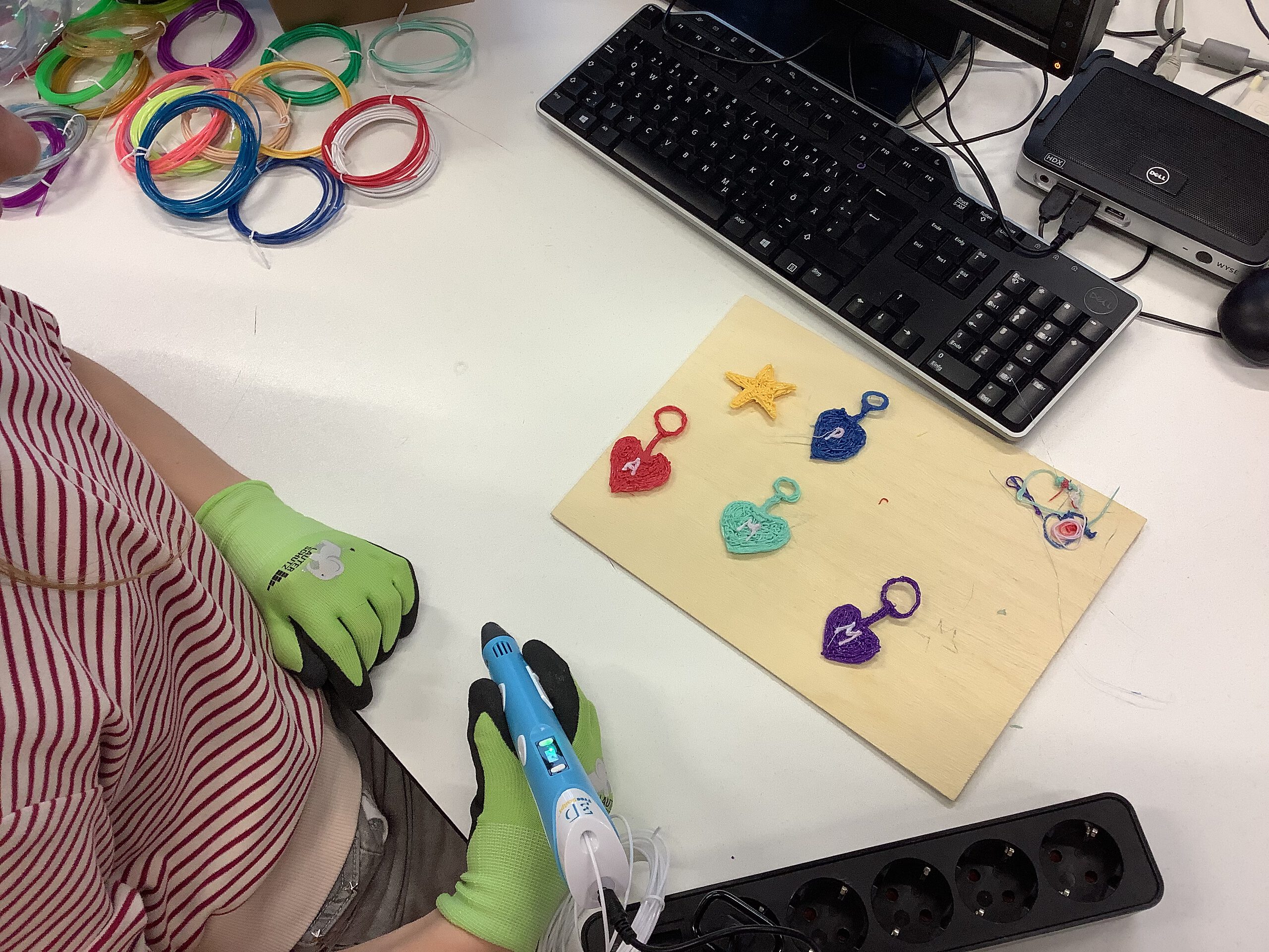 Ein weiteres Projekt macht deutlich, wie kreativ im Makerspace gearbeitet wird: Mit dem 3D-Pen entstehen verschiedene Druckerzeugnisse, die von den Schülerinnen und Schülern selbst entworfen und umgesetzt werden. Hier wird aus einer Idee direkt ein greifbares Produkt.